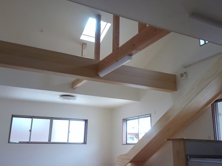 | 設計者の想い | 小さなお子さまのために家の中に大きなすべり台をつけたい!という施主さまのご要望に応え、強度や安全性に細心の注意を払って設計しました。リビングには開放的な吹き抜けに天窓を設け、日中は自然の光が明るくふりそそぎます。 |
